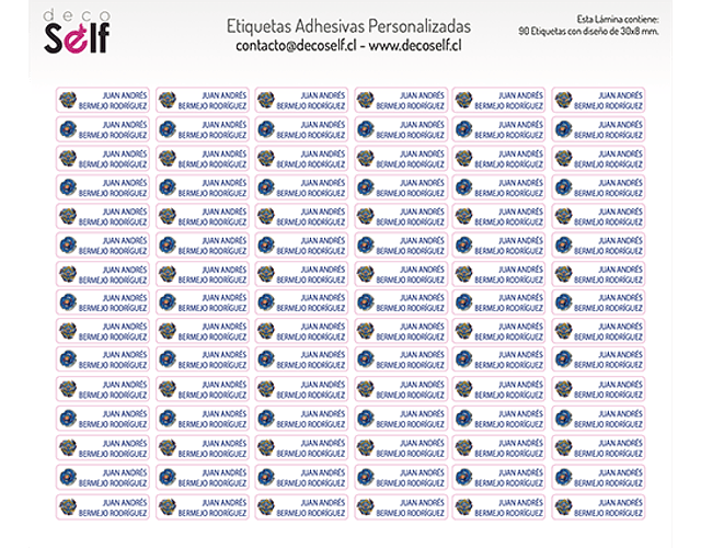• 90 Etiquetas Chicas con Diseño (30x8mm.): Para marcar lápices, servicios, gomas, sacapuntas, etc.