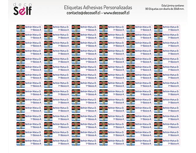 - 90 Etiquetas Chicas con Diseño (30x8mm.): Para marcar lápices, servicios, gomas, sacapuntas, etc.
